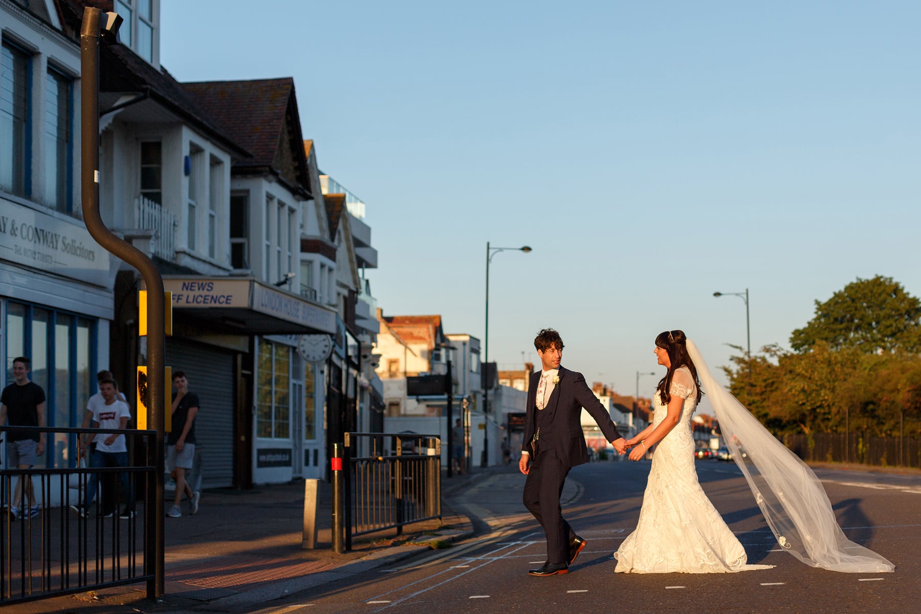 After the wedding breakfast, Charlotte and Casey and I went for a wander around the streets of Southend for a few couple photos before returning to the Arlington to greet the evening guests before the dancing.
