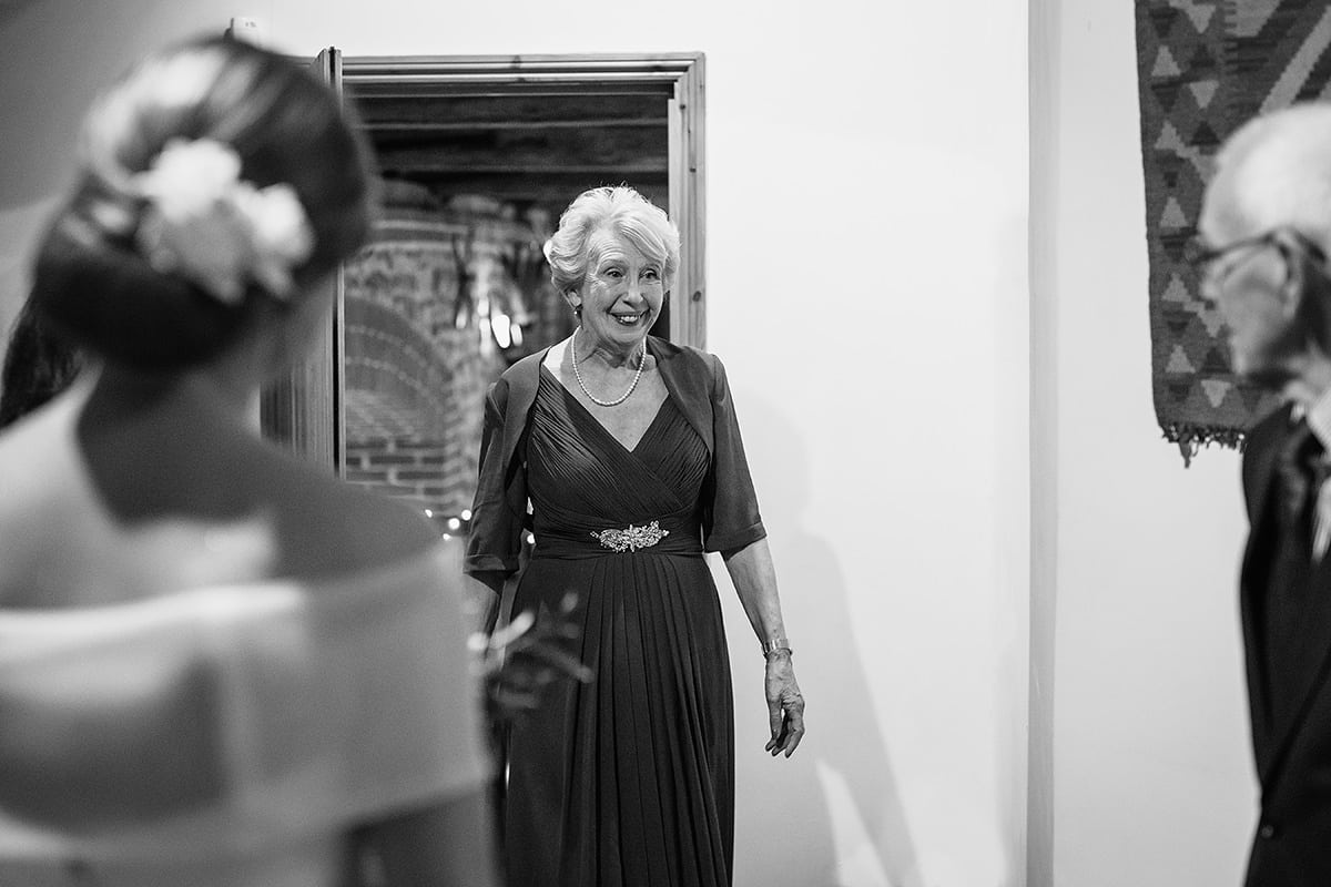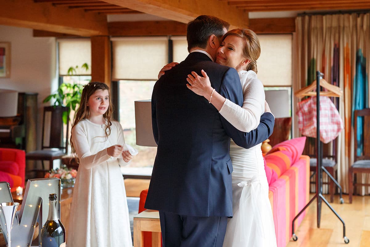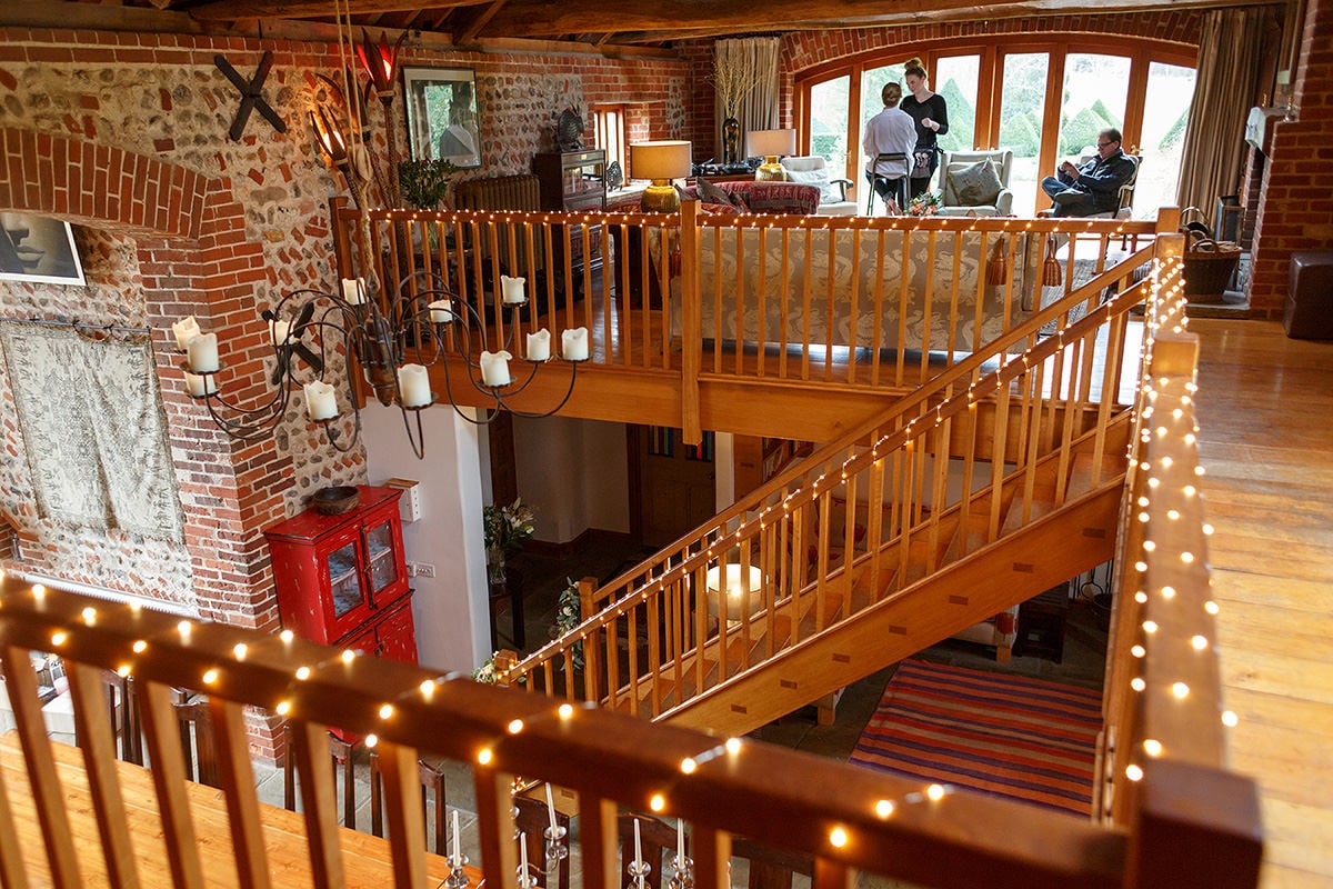 Marika and Mark were having a late ceremony so to make the best use of the December light we adopted an American tradition and Mark got his ‘first look’ at Marika in her dress before the ceremony and we took a few couple portraits around the barn. Once the guests were seated Marika’s father escorted her down the stairs to join Mark for their ceremony.