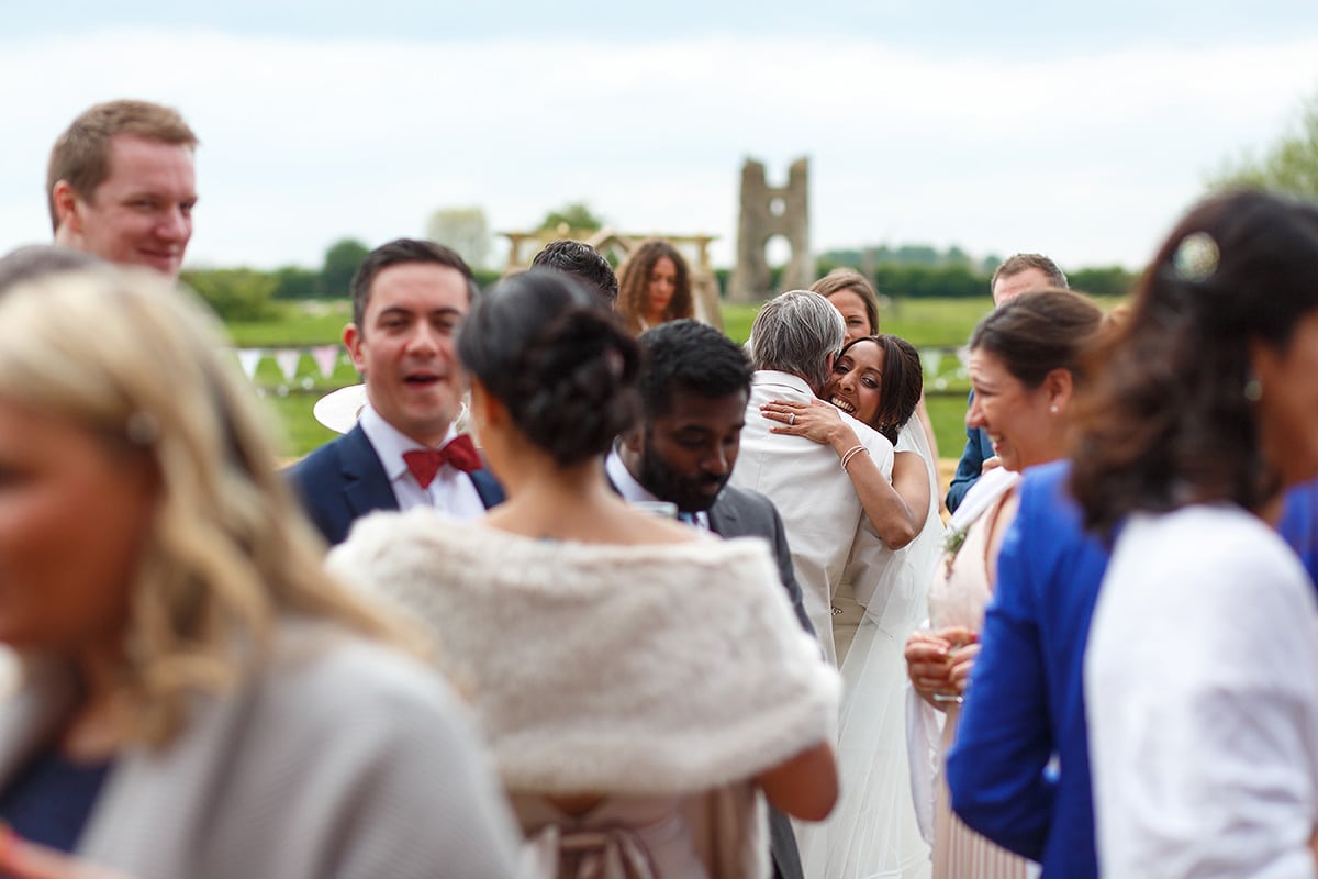 A quick trip down the aisle through bubbles and there was time to greet their guests before another trip on the tractor through the fields to the church ruins for a few photos before everyone was seated for the wedding breakfast. Some great speeches to start before everyone enjoyed their meal, with a few guests wandering outside to take advantage of the great weather and play rounders. Sam and Rob joined in later, although Rob’s dress shoes weren’t the best to keep him on his feet…